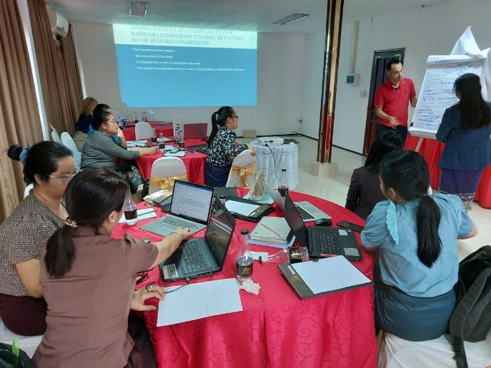 From October 2022 to June 2023, 14 junior researchers from UHS, SEAMAO, LaoTPHI and Faculty of Social Sciences were trained in qualitative research and in analyzing qualitative data. They will use these skills for analyzing the next data set after the second data collection of the qualitative research that will take place in Phine and Thapangthong in December 2023.